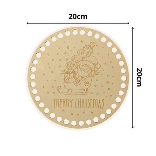 Korbboden rund Ø 20 cm – Weihnachtsmann im Schlitten, graviert