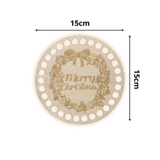Korbboden rund Ø 15 cm – Merry‑Christmas‑Kranz, graviert