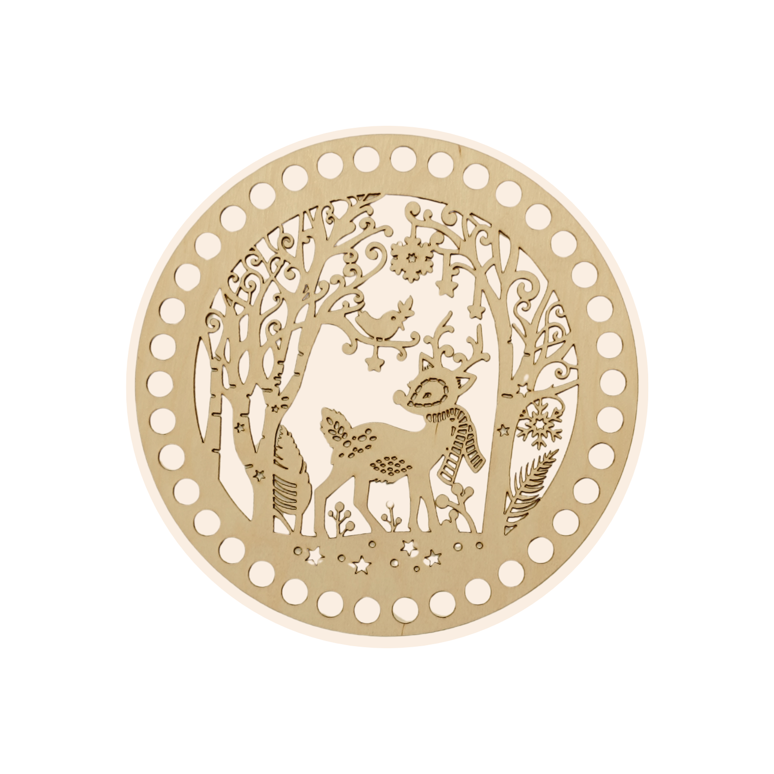 Korbboden rund Ø 20 cm – Rentier im Wald, floraler Rahmen