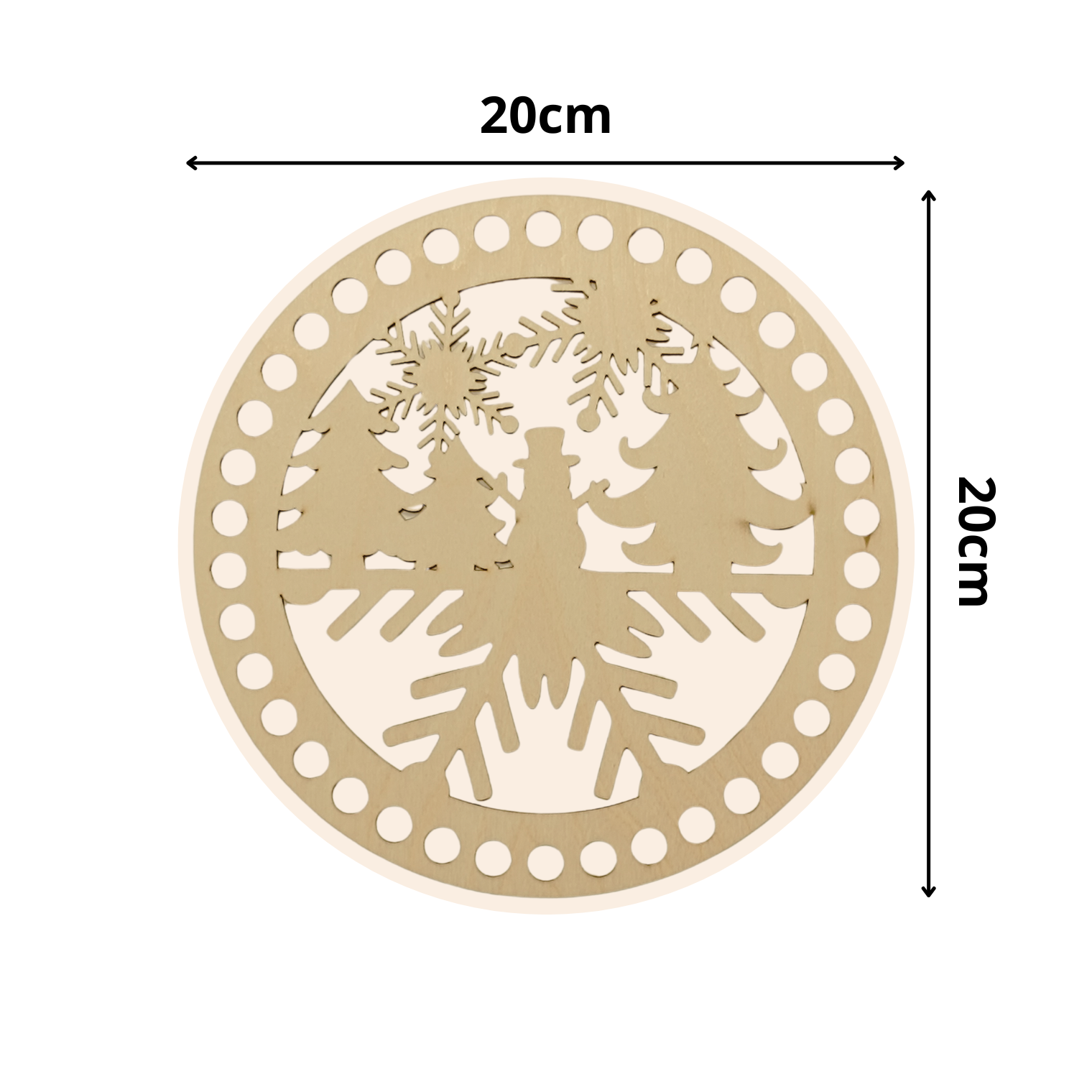 Korbboden rund Ø 20 cm – Tannen & Schneeflocke, gelocht